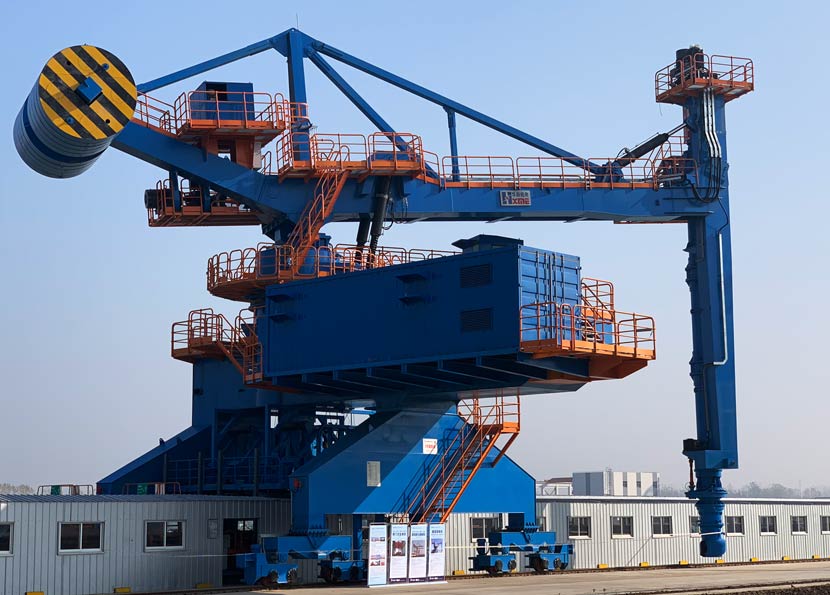 由杭州華新機電工程有限公司總包的一臺設計生產率為750t/h的螺旋卸船機總裝完成進入調試階段。該設備用于國家能源集團宿遷發電有限公司二期擴建2×660MW超超臨界二次再熱機組工程。本工程位于宿遷市南偏東距市中心18km處的京杭大運河南,二期新建碼頭共有4個泊位,配置兩臺螺旋式卸船機、兩臺16t清艙用港口門座機。