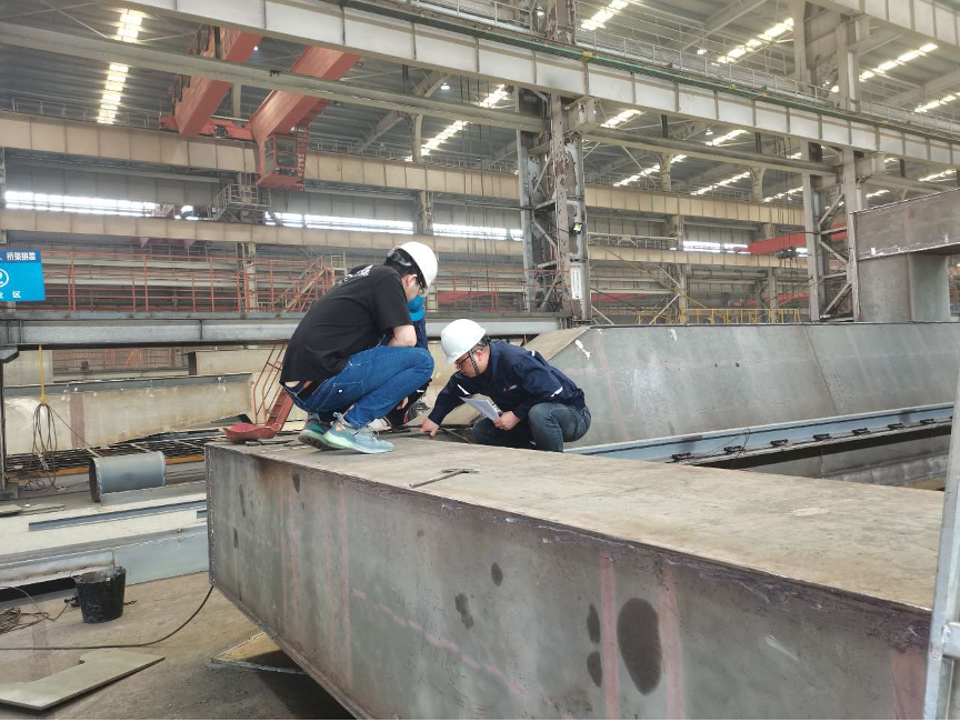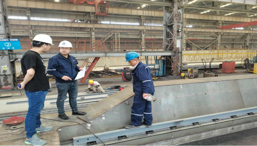 2021年,莊巍同志發(fā)現(xiàn)原先運(yùn)用在陸豐900t固定式門座機(jī)上的工藝還可以改進(jìn),于是在反復(fù)地試驗(yàn)和不懈地努力下,將改進(jìn)工藝運(yùn)用到三澳650t項(xiàng)目中,解決了廠內(nèi)吊裝設(shè)備能力不足且避免請(qǐng)大型起吊設(shè)備花費(fèi)大額費(fèi)用的問題。同年公司接單的德龍5037門座機(jī)項(xiàng)目在海重公司制作,由于該類型也是海重公司第一次制作,門架門腿結(jié)構(gòu)特殊,正常制作無法滿足圖紙要求,經(jīng)過一系列制作樣品驗(yàn)證,且在圖紙視圖存在缺陷和無檢驗(yàn)基準(zhǔn)情況下,他卻始終堅(jiān)信“沒有完不成的項(xiàng)目”,在經(jīng)過不斷的實(shí)踐后,發(fā)現(xiàn)可以通過放樣設(shè)計(jì)基準(zhǔn)靠板可以解決問題,最終讓制作班組快速順利地完成了制作任務(wù)。
