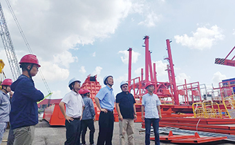 ▲圖為公司黨委書記、執(zhí)行董事、總經理黃生湘(右三)一行察看碼頭現場情況