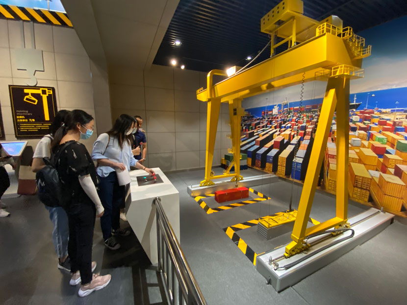 參觀特檢院展館,認真聆聽講解員介紹起重機行業歷史,操作館內模型。