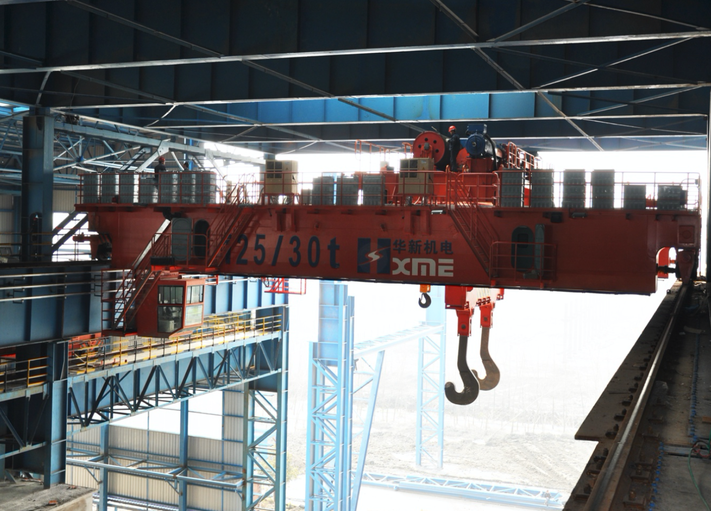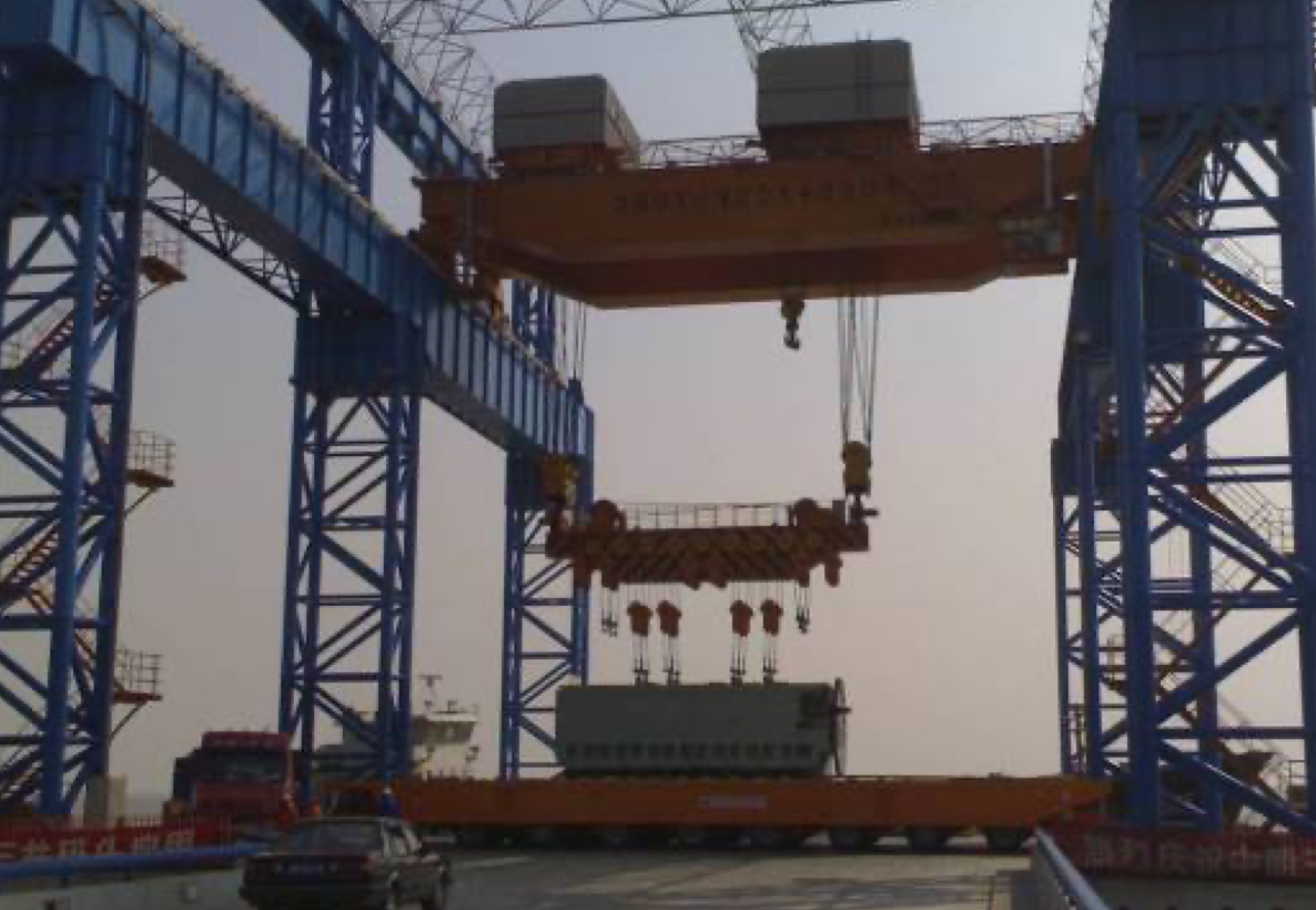 公司設計制造的所有橋機及門機的起升小車系消化吸收國外先進技術,結合我國當時的配套水平,綜合研究院多年的技術研制經驗,遵照GB/T3811-2008《起重機設計規范》、GB/T14405-2011《通用橋式起重機》等標準,同時參照國外有關起重機標準及歐洲搬運協會主流橋式起重機機型研制而成,節能減排,經濟環保,特別適合地下廠房、新型工廠及大噸位貴重物件的吊裝、搬運就位工作。公司首臺臺橋機為1990年研發、1992年投入生產的寧波北侖電廠80/20t橋式起重機,公司首臺臺門機為1994年向富春江發電廠提供的2×20t尾水門機。近三十年的發展,已向國內外眾多優質客戶提供千余臺橋機和門機設備,是目前業內最先進、最成熟的低凈空小車結構。目前制造過的單小車橋機最大額定起重量為800t,雙小車橋機最大額定起重量為500t+500t,具備1500噸橋機的設計制造能力;制造過的門式起重機最大額定起重量為900t的造船龍門吊。